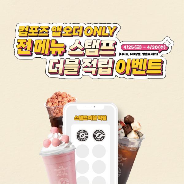 컴포즈 앱오더 ONLY 전 메뉴 스탬프 더블 적립 이벤트조회 38,414 2025-04-24 11:28 컴포즈 앱오더 ONLY 전 메뉴 스탬프 더블 적립 이벤트조회 38,414 2025-04-24 11:28