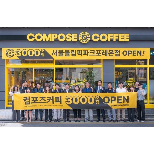 컴포즈커피, 전국 가맹점 3000호점 돌파… ‘브랜드 경쟁력 입증’조회 332 2025-09-16 09:21 컴포즈커피, 전국 가맹점 3000호점 돌파… ‘브랜드 경쟁력 입증’조회 332 2025-09-16 09:21