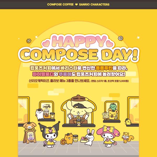컴포즈커피, 전 세대 취향 저격 ‘산리오캐릭터즈’와 여름 한정 콜라보 진행조회 4,433 2025-07-30 09:34 컴포즈커피, 전 세대 취향 저격 ‘산리오캐릭터즈’와 여름 한정 콜라보 진행조회 4,433 2025-07-30 09:34