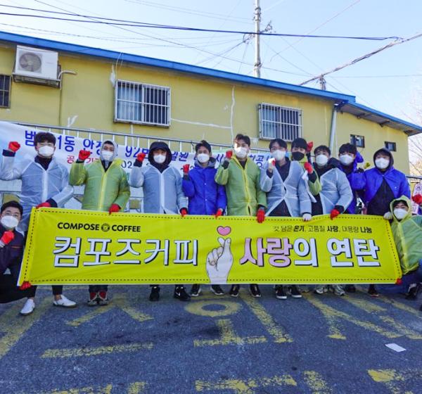 지난 12월 19일 컴포즈커피 임직원들이 코로나19 바이러스의 확산으로 인하여